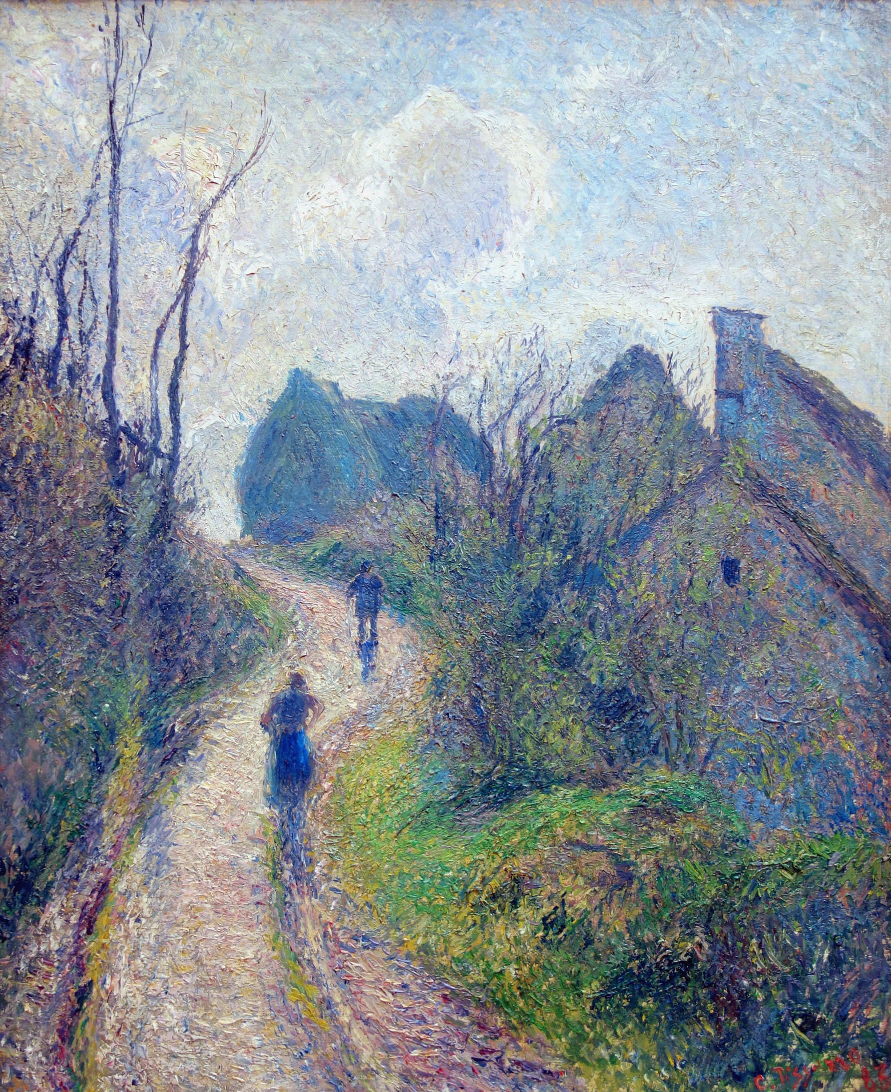 Entre 1859 et 1861, il fréquente des académies libres, dont celle du "père Suisse", haut lieu de l’avant-garde. Il y lie amitié avec Monet, Guillaumin, Piette et Cézanne, qu’il encouragera toute sa vie. Travaillant aussi dans l’atelier d’Anton Melbye, il peint en plein air à Montmorency, affinant sa recherche sur la lumière et les paysages. Théoricien de l’anarchie, proche des milieux libertaires de la Nouvelle-Athènes, Pissarro imprègne son œuvre d’un humanisme profondément égalitaire. Tout au long de sa carrière, il célèbre la ruralité, la vie quotidienne et les paysages en mutation, dans des compositions où la lumière devient le fil conducteur de l’harmonie entre l’homme et la nature.